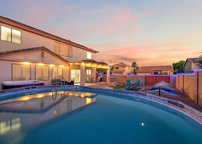 Offering Jacuzzis, a hot tub, and a sauna for a relaxing experience, Desert Dunes Sauna And Spa Casa Grande is located 2.3 miles from Peart Park. The 3-bedroom holiday home features opportunities for billiards in the area, within a 10-minute drive of Casa Grande Neon Sign Park Outdoor Museum.
